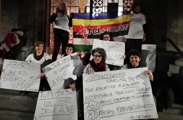 In aula manifestazione del gruppo rhodense di ArciCheDonne per chiedere il diritto all'autodeterminazione del proprio corpo