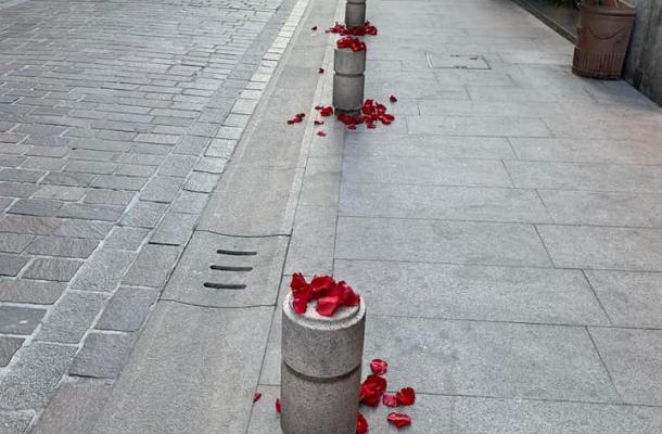 Sorpresa per il giorno degli innamorati: nel centro cittadino petali di rose rosse
