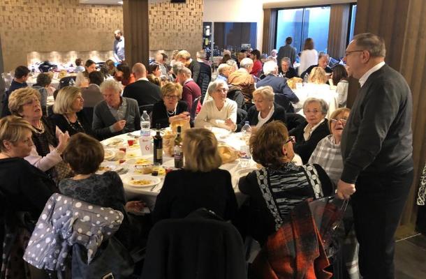 Saloni del The Mode - Villa Jucker affollatissimi per il pranzo con il quale la parrocchia San Magno ha festeggiato un momento comunitario per la Festa patronale