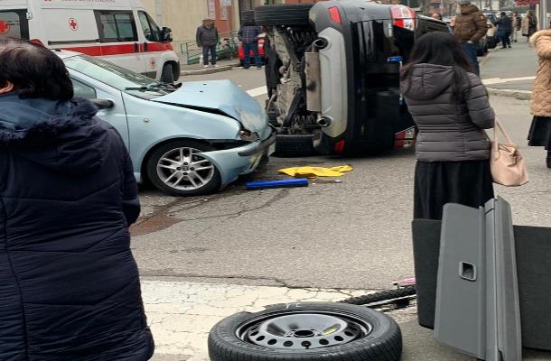 Violento scontro oggi, sabato 1 febbraio, alle 15.30, in via Ciro Menotti angolo via Genova. Due auto si sono scontrate, causando il ribaltamento su un lato di una.
