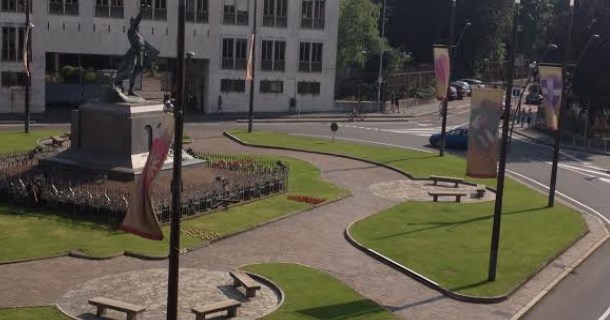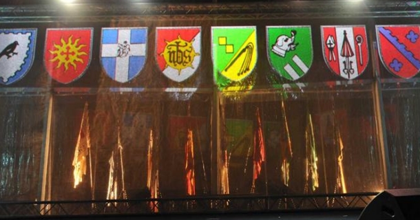Palio: Vessilli sbiaditi in piazza Monumento