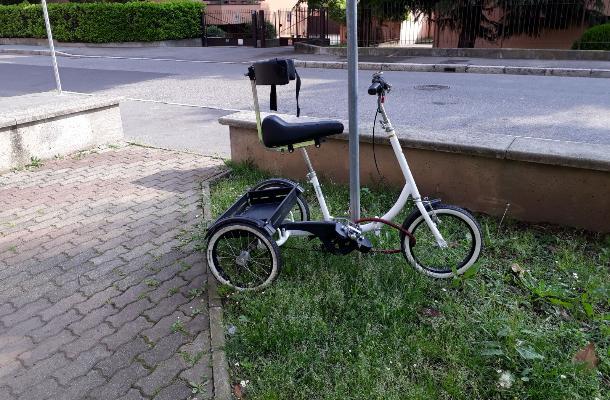 Bici per disabili abbandonata da una decina di giorni